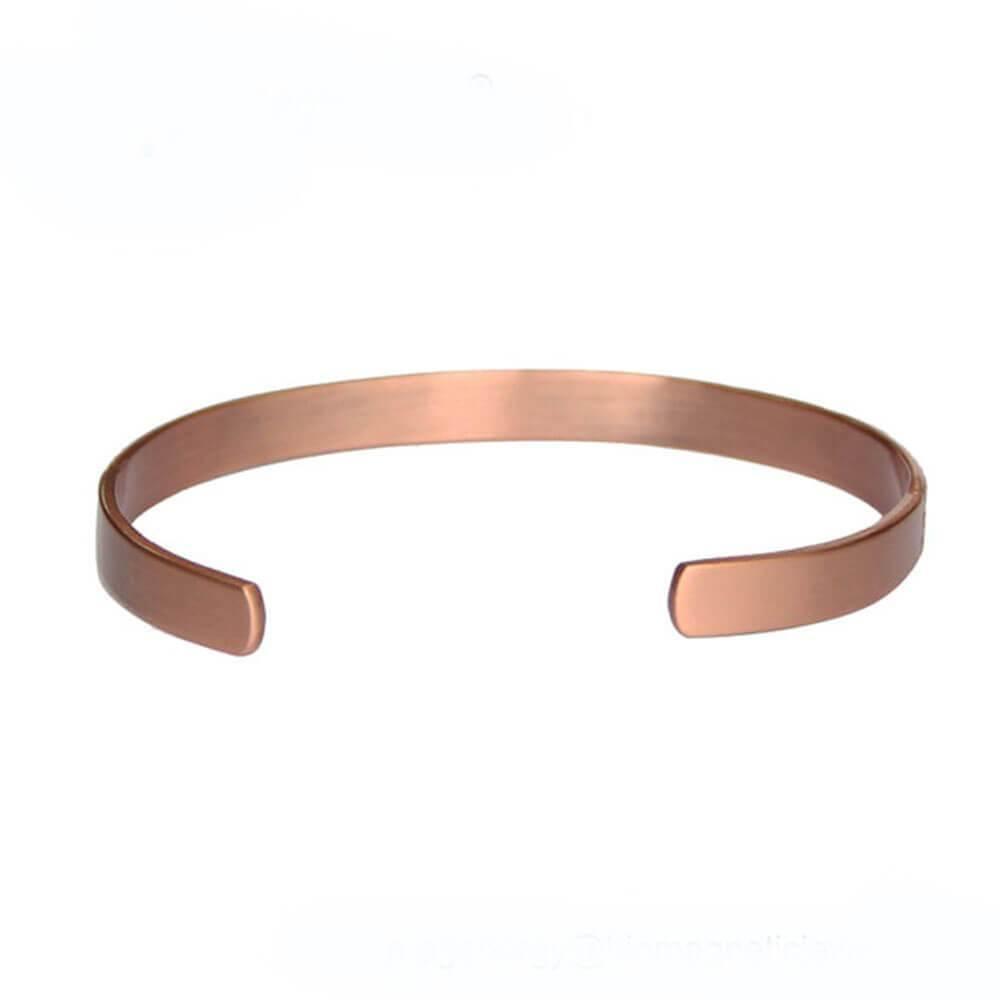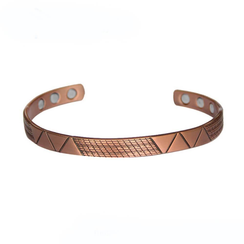 Pure copper geometric design copper magnetic bangle. A high quality piece with a sleek pattern surrounding the outside of this hypoallergenic therapeutic piece.