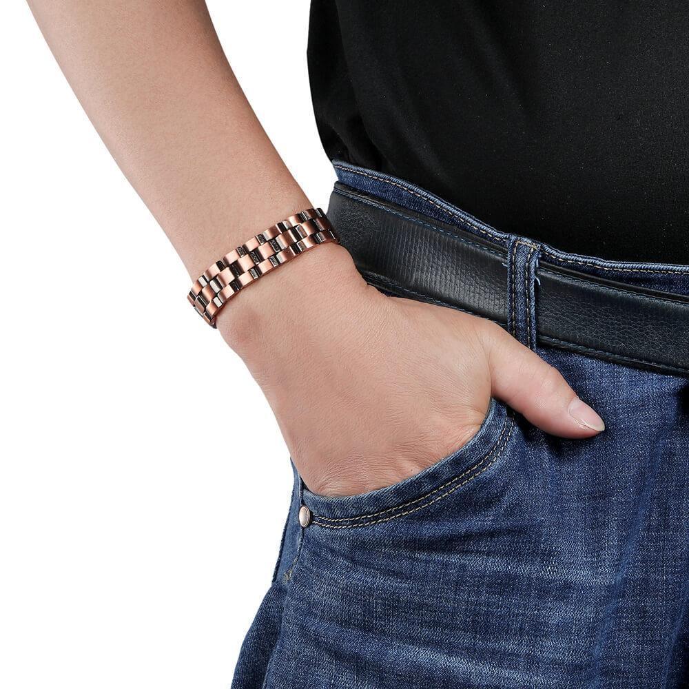 Mens Heavy Brickwork Copper Magnetic Bracelet