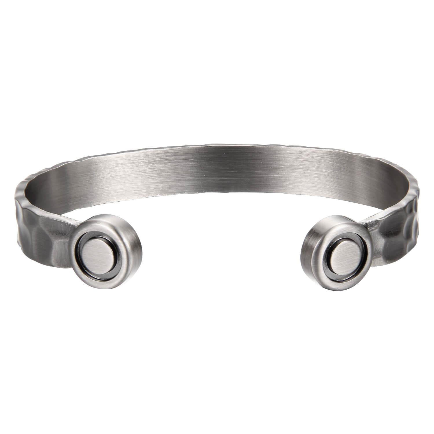 This fabulously crafted piece contains two high-power 5500 neodymium magnets that elegantly cuff around your wrist, along with four 3500 smaller gauss magnets.