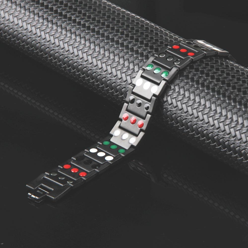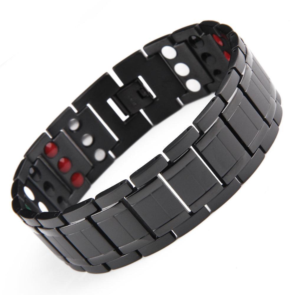 The Black Gloss Bracelet triple row titanium bracelet has the additional bio-energy elements which consist of Germanium, Anion and FIR Stones, believed to add overall health benefits. You can try this bracelet or any other in store for 30 days, and if it don't help, simply return it.