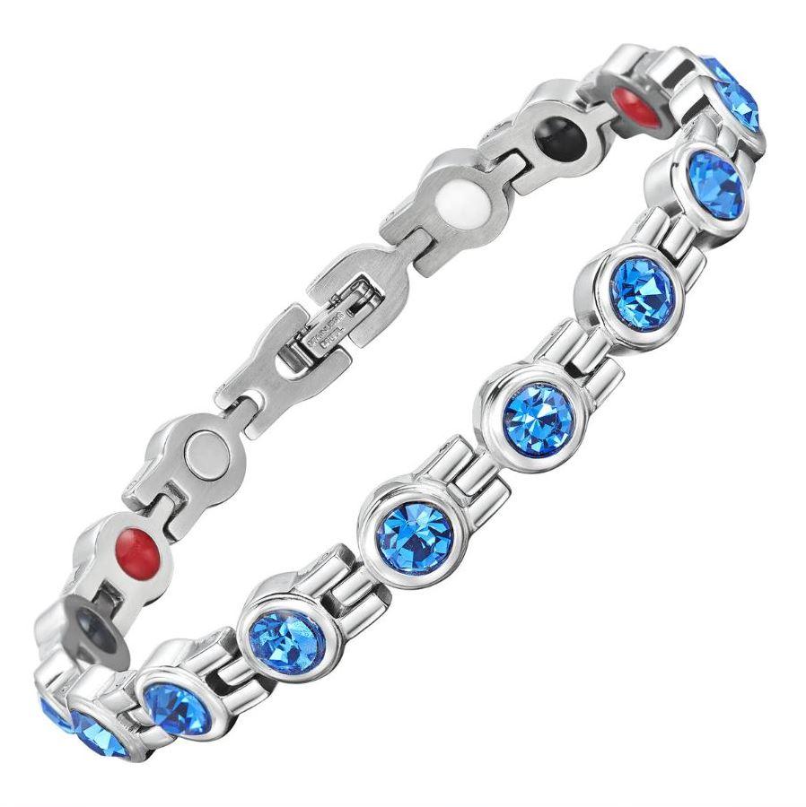 Experience the rejuvenating power of the Ladies Laguna Blue Crystal Magnetic 4in1 Bracelet! Featuring 4 strong 3500 gauss magnets. Enjoy a healthier lifestyle with this luxurious, fashionable bracelet! Shop now with free UK delivery!