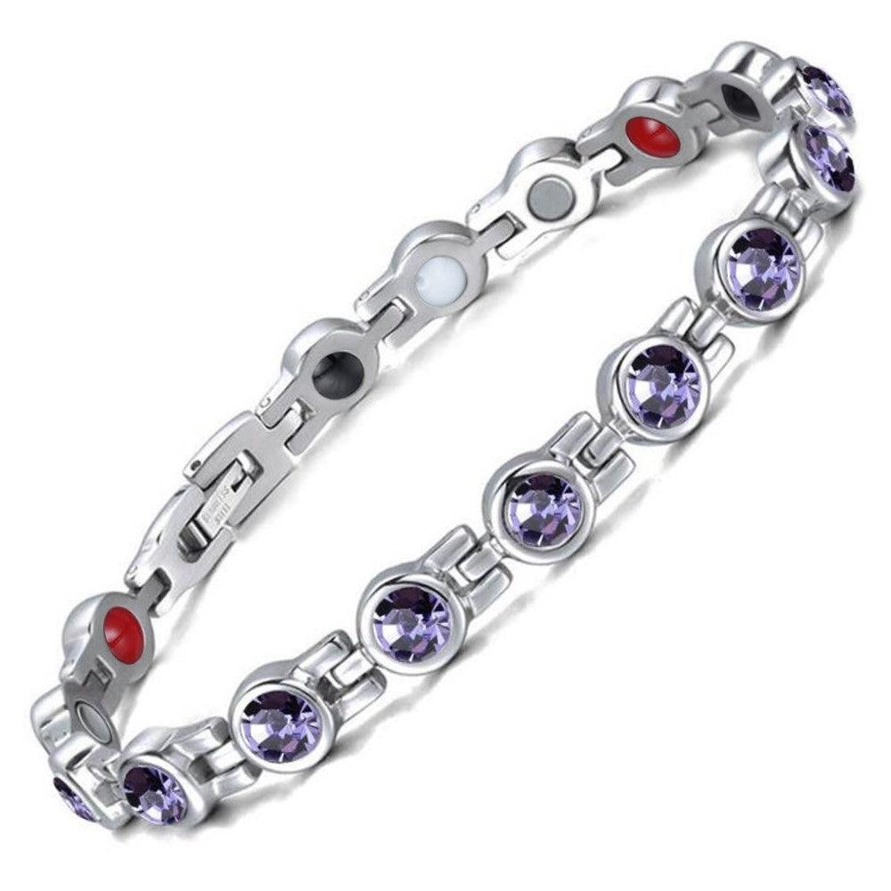 Experience the rejuvenating power of the Ladies Laguna Purple Crystal Magnetic 4in1 Bracelet! Featuring 4 strong 3500 gauss magnets. Enjoy this luxurious, fashionable bracelet with free UK delivery!
