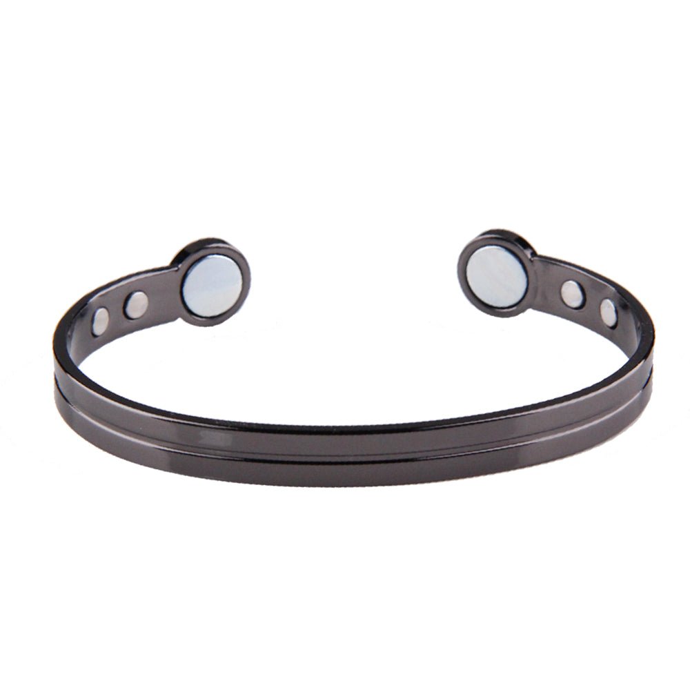 This incredible men's triple thread hi-power magnetic copper bangle in a sleek black finish will look amazing on any wrist. It's a remarkable piece that can enhance any outfit, or make for a perfect present for a friend or loved one.