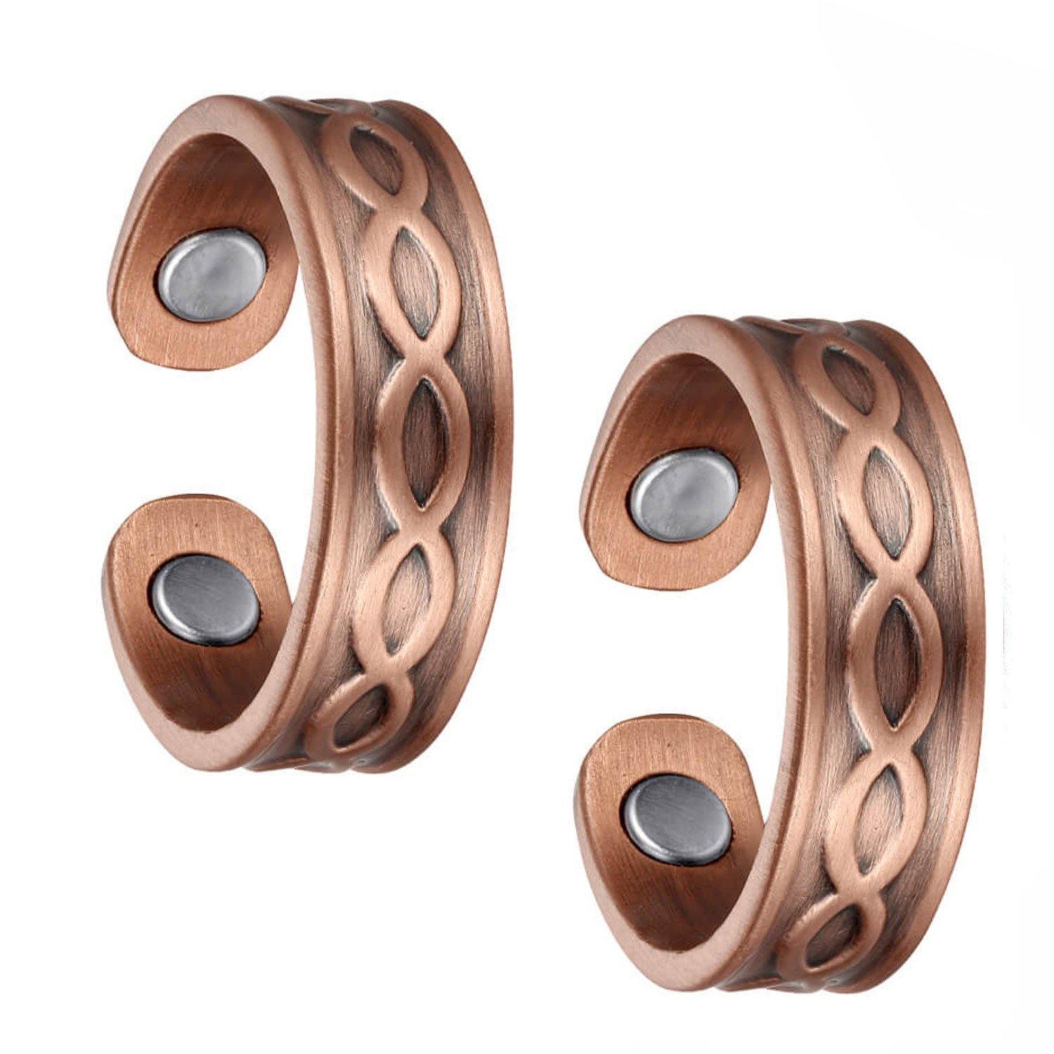 Here we have a unique and artistic set of two magnetic copper rings with a delightful crisscross engraving that goes all the way around the pieces. Consisting of a smooth copper finish and a distinctive design. These magnetic copper rings are sure to add a touch of class to any occasion.